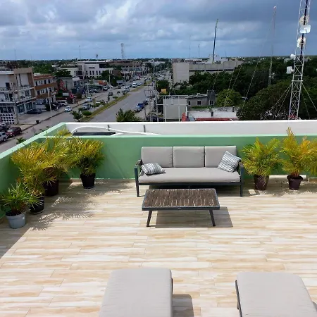 Moderno Departamento En El Centro Appartement Tulum Pueblo van 70 m² biedt gemakkelijke toegang tot verschillende stadsattracties, zoals Terreno Expoferia, gelegen op loopafstand van ongeveer 6 minuten hiervandaan. Het appartement heeft uitzicht op het zwembad en biedt een terras, een zwembad.